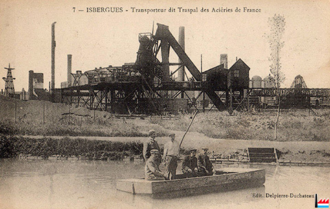 Aciéries de France, Isbergues - Transporteur dit Traspal - vers 1916 (Carte postale: Edit. Delpierre - Duchateau; Collection: industrie.lu)