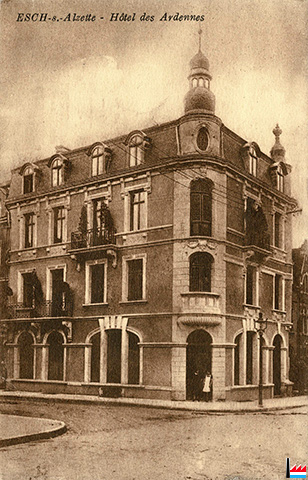 ![]() Hôtel des Ardennes, Esch/Alzette (Carte postale: Victor Ahlen, photographe de la Cour, rue Xavier Brasseur, Esch/Alzette; Collection: industrie.lu) |