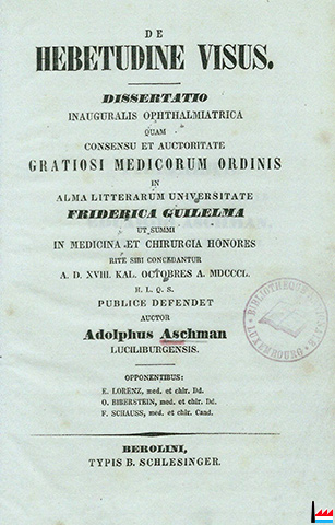 | 20.9.1853 | Noms et qualités des électeurs qui ont pris part au vote pour la nomination d’un député, mardi, 20 septembre. Aschmann Edouard, médecin (Supplément au N° 77 du Courrier du Grand-Duché 24.9.1853) |