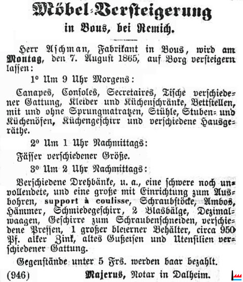 Aschman, Fabrikant, Bous (LW: 3.8.1865)