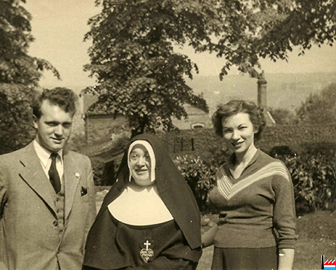 Debout: M. Willibrord Namur, Mme Eugène Salentiny - Hastert, M. Jonas, Dr Édouard Aschman, M. Eugène Salentiny, M. Franz Hastert