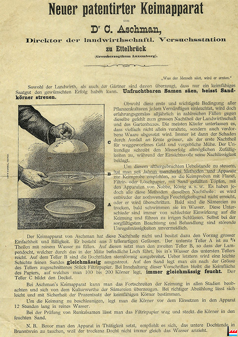 1894 - Neuer patentirter Keimapparat von Dr. C. Aschman, Direktor der landwirthschaftl. Versuchsstation zu Ettelbrück (Grossherzogtum Luxemburg.)