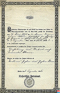 | 23.4.1894 | Grand-Duché de Luxembourg N° 2012 (…) Arrête : Art. 1er. Il est délivré au sieur Dr. C. Aschman, qui a fait élection à de domicile à Ettelbruck en sa demeure un BREVET D’INVENTION Pour : Un nouvel appareil germinateur pour l’essai des semences agricoles et forestières et pour la durée de quinze années qui ont commencé à courir le vingt-quatre avril 1894. (…) Luxembourg, le 23 avril 1894. Brevet d’invention - Collection famille Aschman-Bodson, Luxembourg |