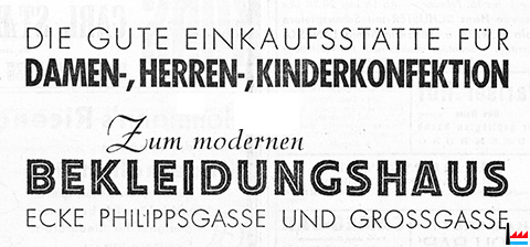 Zum modernen Bekleidungshaus, Luxemburg, Ecke Philiippsgasse und Großgasse (LW: 1.2.1941)