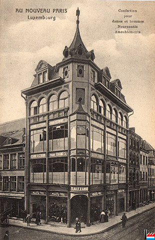 Magasins Au Nouveau Paris, Luxembourg, Ecke des Arsenal- und Philippstrasse, Haus Mersch-Adam