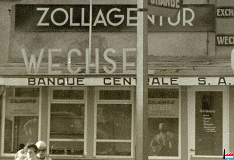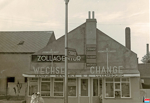 ![]() Zollagentur A. Streff - Wechsel - Change - Banque Centrale S.A. Luxembourg, Wasserbillig (Collection: industrie.lu) Die Zollagentur Streff aus Luxemburg hat in Wasserbillig ein zweites Bureau, direkt an der Brücke, neben der Wechselstelle errichtet. (LW: 23.7.1954) Wasserbillig. Den Besitzer gewechselt. Die Zollagentur Streff die im Hotel Mailliet in der Nähe der Brücke ihre Büros hatte, ging an Fräulein Denise Barthel aus Luxemburg über. Fräulein Barthel führt den Betrieb auf eigene Rechnung weiter. (LW: 16.3.1957) |