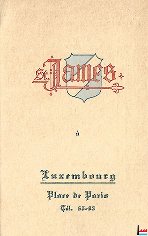Eröffnung des "St. James‘ Club" Für Samstagabend waren wir zur Eröffnung des "St. James' Club", des gediegenmodernen neuen Club-Lokals mit Bar und Orchester, am Pariser Platz zu Luxemburg eingeladen. Herr Paul Thein, Besitzer des bekannten "Hotel Moderne" ließ unter Leitung des Architekten Arthur Thill, das Erdgeschoß des Hotels umbauen zu einem stilvollen modernen Clubraum. Die Eröffnung fand bei regem Andrang des Publikums statt. Die von Neonlicht überflammte Entrée ist jetzt direkt an den Pariser Platz verlegt. Nach der Entrée biegt man rechts in den Clubraum ab, während es geradeaus zum Entrée-Hall und Hotelbüro geht. (…). (t: 2.9.1947) |