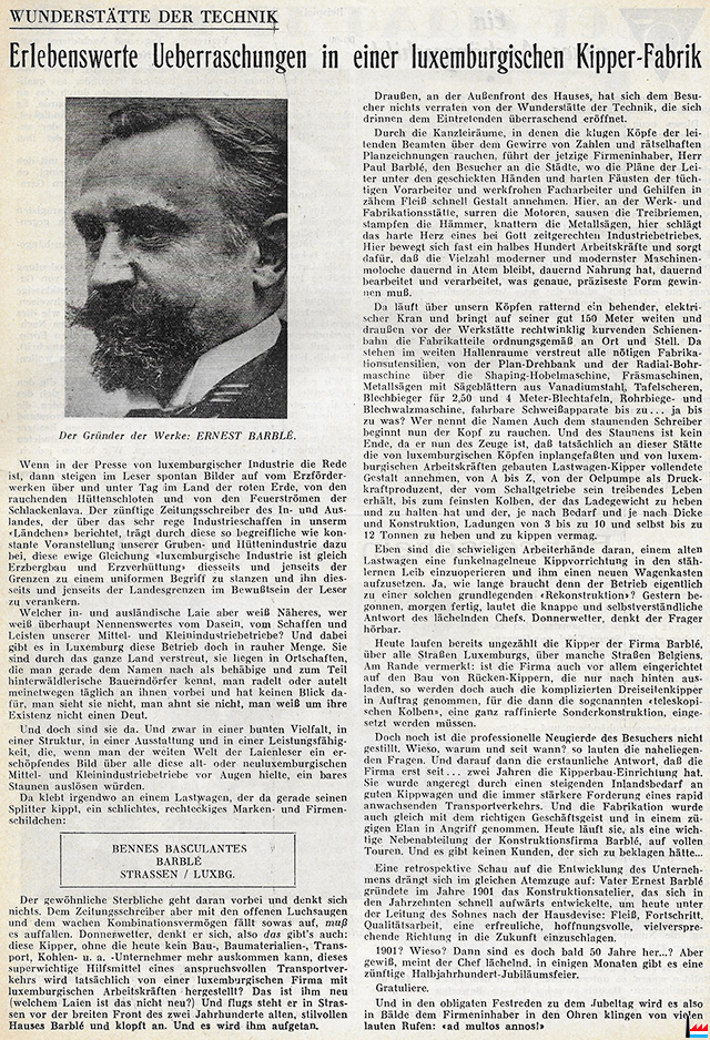 Ateliers Ernest Barblé Succ. Paul Barblé - Ingénieur A.I. Lg. Strassen-lez-Luxembourg Fondés en 1901 |