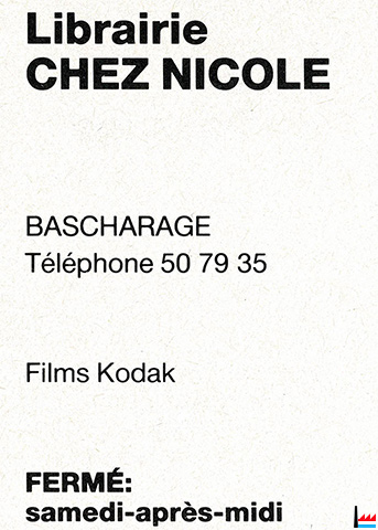 <=1969: Scheerer Lucien, dépositaire, 116 r. de Luxembourg, Bascharage, tél: 507260 |