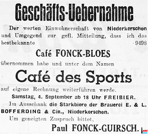 | 1937 - 1950 | Café des Sports, Paul Fonck-Guirsch, Bascharage, 112 route de Luxembourg (t: 4.9.1937) |