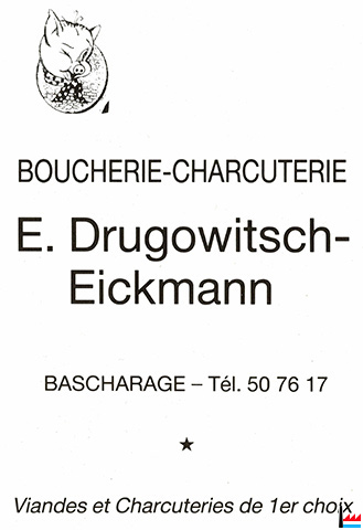 | 1969, 1986 | Boucherie - Charcuterie Drugowitsch - Eickmann E., Bascharage, 15 rue de la Poste, tél: 507617 |