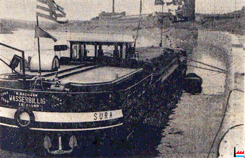 Am 4. September 1958 war die Schiffsweihe gewesen und tags darauf die Ausfahrt moselwärts erfolgt. „Vor 3 oder 4 Jahren wird die „Sura“ ihre Heimat nicht mehr Wiedersehen“, hieß es damals. „Sie wird erst wieder moselaufwärts fahren, wenn der Fluß kanalisiert ist.“ Und es wurden beinahe 6 Jahre. Jetzt kann sie regelmäßig wiederkommen. Es dürfte noch bekannt sein, daß Willy Baumann sein Schiff in zweieinhalbjähriger Arbeit zusammen mit seinem Sohn selbst erbaut hat. Eine einmalige Leistung in der Geschichte des modernen Schiffsbaues. Das Schiff hat eine Gesamtlänge von 39 m, eine Breite von 5,08 m, ein Gewicht von ca 70 t bei einer maximalen Nutzlast von 430 t. Es dient zum Transport von Waren auf den Flüssen und Kanälen Westeuropas. Am Montag fuhr die Familie Baumann weiter moselaufwärts in Richtung Metz auf Epinal zu, wo die Ladung gelöscht und neue Fracht an Bord genommen wird. Wir wünschen der „Sura” gute