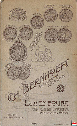 | <=1904 | Bernhoeft Charles, photographe, 5 avenue de l'Arsenal, Luxembourg | ||||||||||||||||