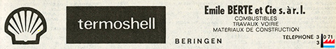 | <=1976 | Emile Berté et Cie s.àr.l., Beringen, tél: 32071 / 32019 combustibles, travaux voirie, matériaux de construction termoshell |