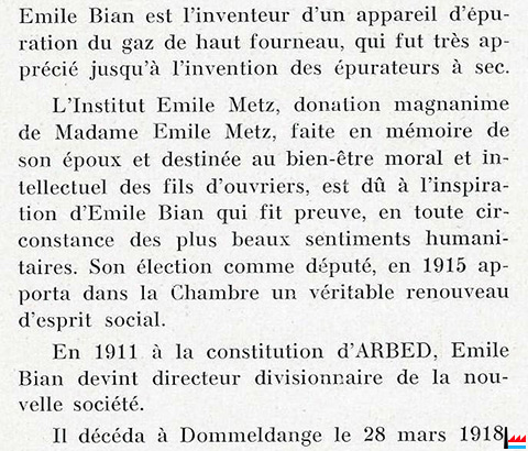 | 1910 | Emile Bian, ingénieur à Dommeldange, administrateur-délégué de la Compagnie générale des ciments | ||