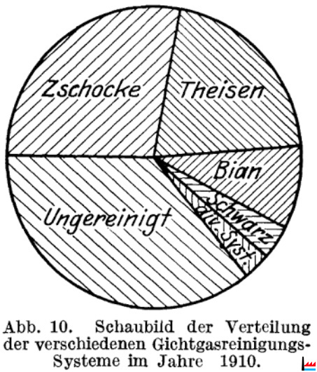 Gichtgasreinigungs-Systeme 1910: Zschocke, Theisen, Bian, Schwarz, ungereinigt