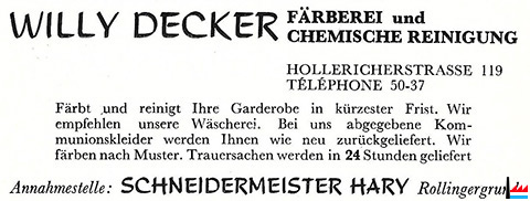 | 1953 | Willy Decker - Färberei und chemische Reinigung - Hollericherstrasse, 119 |