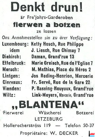 | 11.1932 | Josy Thorn, bisheriger Mitinhaber von BLANTENA übernimmt BLANTENA |