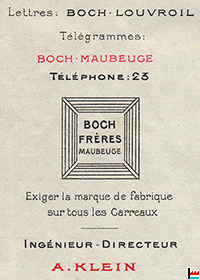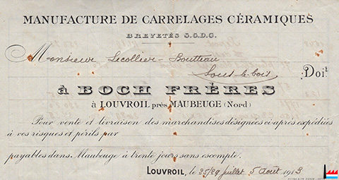 Manufacture de Carrelages Céramiques Boch Frères, Louvroil près Maubeuge (Extrait d'une facture du 25/29.7 5.8.1913; Collection: industrie.lu)