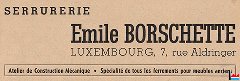 | <=1948/49 | Atelier de constructions - Serrurerie Emile Borschette 7, rue Aldringer Luxembourg |