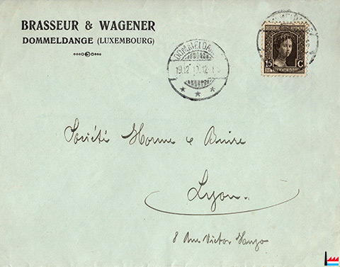 Brasseur & Wagener, Dommeldange - Enveloppe 1912 (Collection: industrie.lu)