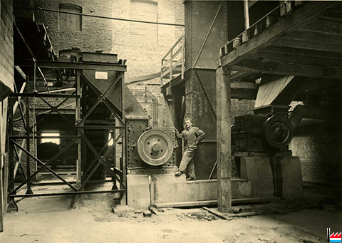 Ateliers et Briqueteries de Landuydt, Mornimont: concasseur ARBED Dommeldange à gauche - broyeur à droite (Photo collection: industrie.lu)