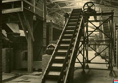 Ateliers et Briqueteries de Landuydt, Mornimont: Elévateur du schiste ARBED Dommeldange avant concassage (Photo collection: industrie.lu)