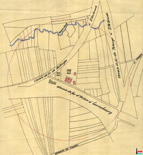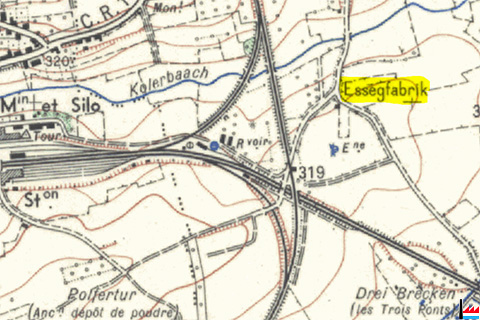 Essegfabrik, Kleinbettingen - © Origine Administration du Cadastre et de la Topographie Luxembourg (ACT) - Extrait de la carte topographique à l'échelle 1: 25.000 édition 1954 - Autorisation de publication du 20.10.2010.»