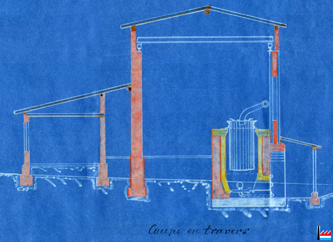 pour locomotive (bâtiment rayé en noir) et de l'Usine de