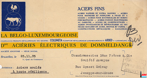 Département Aciéries électriques de Dommeldange (Extrait d'une facture du 25.11.1935; Collection: industrie.lu)