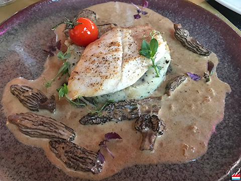 ![]() Avocat, crevettes roses bio, sauce cocktail - Maison B, Bridel (Photo: 8.3.2025 jmo) Turbot grillé, espuma de bisque, salsifis, couteaux - Maison B, Bridel (Photo: 8.3.2025 jmo) |