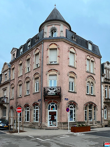 ![]() Eckhaus - Maison - coin 27 rue de la Libération (anc. 27 rue Neuve) et rue Zénon Bernard (anc. rue de l'Industrie), Esch/Alzette (Photo: 30.3.2022 jmo) |
