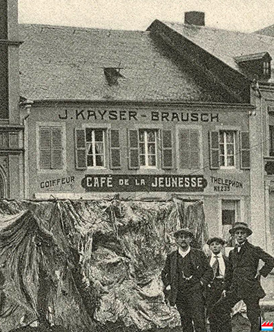 | 1-3.9.1912 | ![]() Café de la Jeunesse J. Kayser-Brausch, coiffeur, téléphon N° 235, Esch/Alzette, Norbert Metz Platz (Extrait de la Carte postale: collection industrie.lu) |