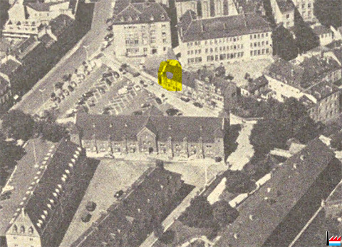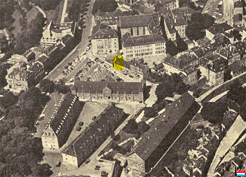 ![]() Die Häuser am Hl. Geistplatz sind dem Abbruch geweiht. V.l.n.r.: ein ehemaliges kleineres Festungsmagazin, in dem sich später das Café Lorrain befand; das Café Blitgen und die Anwaltsstube Netty Probst, die an der Stelle früherer Magazine errichtet wurden. (Revue: 18.8.1962) |