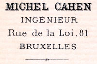 | 1857 | Cahen Michel, ingénieur civil Liège (Arts et Métiers) | ||