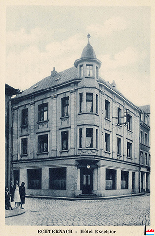 Hôtel Excelsior, Echternach, rue de la Gare (Carte postale: Wilca - Edition W. Capus, Luxembourg; collection: industrie.lu)