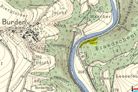 | 1960 | Michelau - Erdrutsch. Ungefähr 1000 - 2000 m3 Schiefer, Stein und Geröll hatten sich am Sonntagabend im Steinbruch Walch, zwischen Michelau und Erpeldingen, losgelöst. Diese beträchtliche Masse ging dann, gegen 21 h, in den nächtlichen Schluchten ein schauriges Echo auslösend, zu Boden, ohne allerdings allzu großen Schaden zu verursachen. Die Straße nach Ettelbrück, die an der Unfallstelle vorbeiführt, war im Nu zugeschüttet und mußte sofort für den Verkehr gesperrt werden. Erst am Montagnachmittag konnten die ersten Fahrzeuge wieder passieren. - Noch ist den Bewohnern der Erdrutsch vom vergangenen Frühjahr in Erinnerung, der in derselben Gegend auf der gegenüberliegenden Sauerseite, kurz nach Passieren eines Personenzuges, die Eisenbahnschienen mit Geröllmassen zudeckte. Auch auf der Straße, die von Michelau nach Bourscheid-Mühle führt, finden die Autofahrer öfter schwere Felsbrocken, die von den steilen Hängen abbröckeln und auf die Fahrbahn kollern. Im Interesse der zahlreichen Passanten wäre es ratsam, den geologischen Unzulänglichkeiten der Gegend nachzuforschen und entsprechende Vorsichtsmaßnahmen zu treffen. (LW: 23.2.1960) |