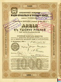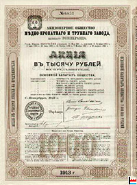 | 1916 - 1919 | Société anonyme de l’Usine à cuivre et à tubes, ci-devant Rosenkrantz Succursale de Novomoskovsk (Gouvernement d’Ekatérinoslav) |