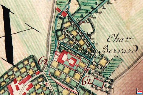 Château Bervard - moulin, Esch/Alzette - 1777 (Carte de Ferraris - Bibliothèque royale de Belgique - 2010)