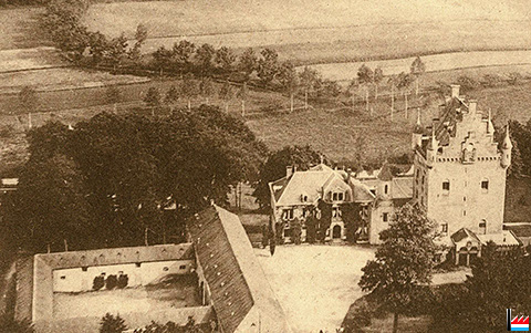 | 1914 | Jonkheer Charles van de Poll seit einigen Jahren Inhaber des Schlosses Hollenfels, selbst ein Kunstkenner und Kunstliebhaber, verstand es, dem fortschreitenden Zerstörungswerk zu wehren und den Charakter des Burgstockes wahrend, denselben für sich und die Seinigen wieder wohnhaft zu machen. Des Herrn Jonkheer Schwägerin Elisabeth Aldegonde Prévinaire, eine Frau von Geist und hoher Intelligenz hatte, wie wir oben gesehen, den Baron Jules Marie Armand Goethals, den letzten Besitzer der Hollenfelser Schloßgüter geheiratet. Die Ehe blieb kinderlos. Bei seinem Tode hinterließ Baron Goethals seiner Gattin die Nutznießung all dieser Güter, während das Eigentum auf die natürlichen Erben, seine beiden Schwestern überging. Von diesen erwarb die Witwe Goethals das Eigentumsrecht durch Kaufakt, um es bei ihrem Tode 1914 ihrem Neffen, dem Jongheer Max van de Poll testamentarisch zu hinterlassen. (Ons Hémecht: 1.6.1935) |