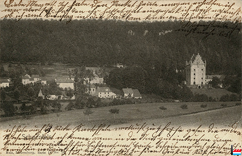 ![]() L'ancien et le nouveau château de Schoenfels (Carte postale: Photographie Hansen, Mersch; collection: industrie.lu) |