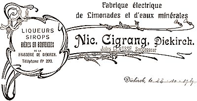 | 1921 | Fabrique électrique de limonades et d'eaux minérales Cigrand Nicolas, Diekirch Tel: 200 |