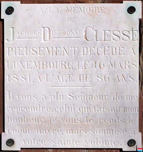 | 16.3.1881 | Décès de Jacques Dieudonné Clesse, à l'âge de 86 ans, à Luxembourg ancien conseiller de la Chambre des comptes |
