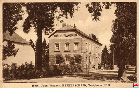 Hôtel Jean Wagner, Heinerscheid - vers 1936 (Carte postale: Verlag A. Colling, Photograph, Clerf; collection industrie.lu)