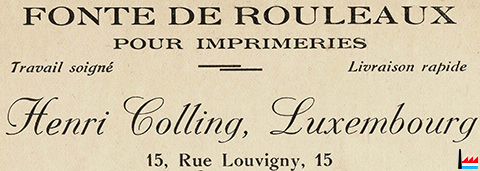 Colling Henri, Luxembourg, 15 rue Louvigny, fonte de rouleaux pour imprimeurs (Collection industrie.lu)