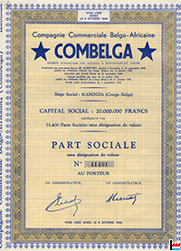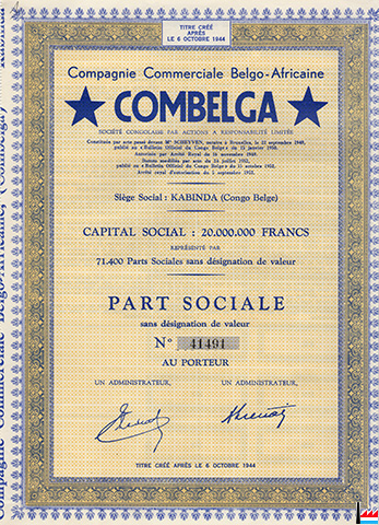 Part sociale Combelga - Compagnie Commerciale Belgo-Africaine (Collection: industrie.lu)