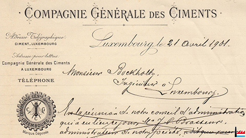 Lettre de la Compagnie Générale des Ciments du 21.4.1901 à M. Bockholtz, ingénieur à Luxembourg (Collection: industrie.lu)