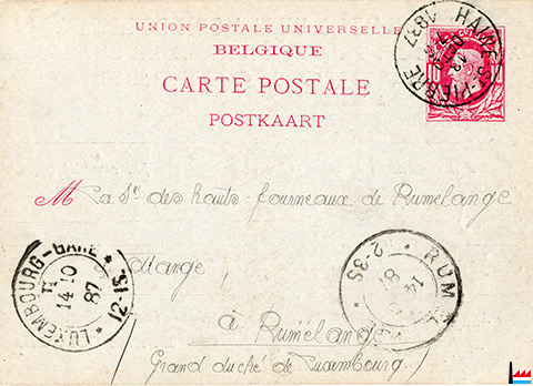 ![]() Carte postale des Charbonnage & Usine à coke de Ressaix aux Hauts-Fourneaux de Rumelange et Ottange Ateliers de triage & Lavage de charbons Evence Coppée à Ressaix-lez-Binche (Belgique) (Collection: industrie.lu) 13.10.1887 - Expédition en gare à Ottange les wagons N° 87610, 87145, 85665, 85927, 86660 chargés de 50.000 kilos de coke métallurgique |