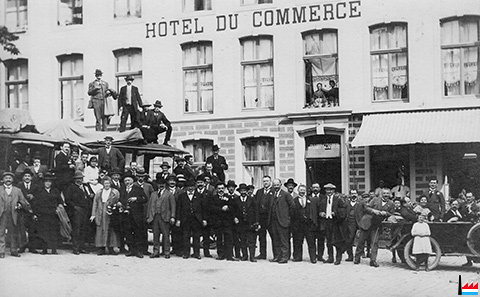 | <=1924 | ![]() Hôtel du Commerce, Grevenmacher - Klopp-Scherer - vers 1924 (Carte photo: collection: Roger Dammé) ![]() Well mäin Urgrousspapp Henri Dammé (1873 - 1952) drop ass, mengen ech, dass et sech hei em eng Versammlung vu Bäcker gehandelt huet. De geneeën Datum kennen ech leider och net. (Roger Dammé) |