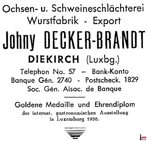 Ochsen- Schweinschlächterei Wurstfabrik Johny Decker - Brandt, Diekirch (Scan: Serge Kugener)